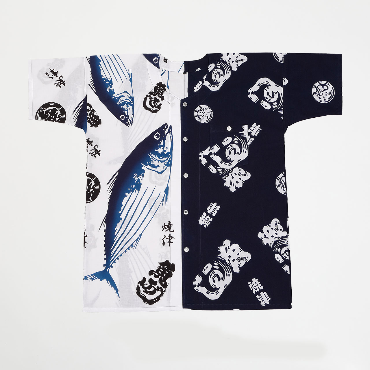 魚河岸シャツの歴史は、昭和初期に焼津市の水産業者の仕事着として始まりました。そして、70年以上経過した2020年には焼津市では、夏になると老若男女が魚河岸シャツで町を闊歩しています。今では、涼しいタウン着に進化しました。